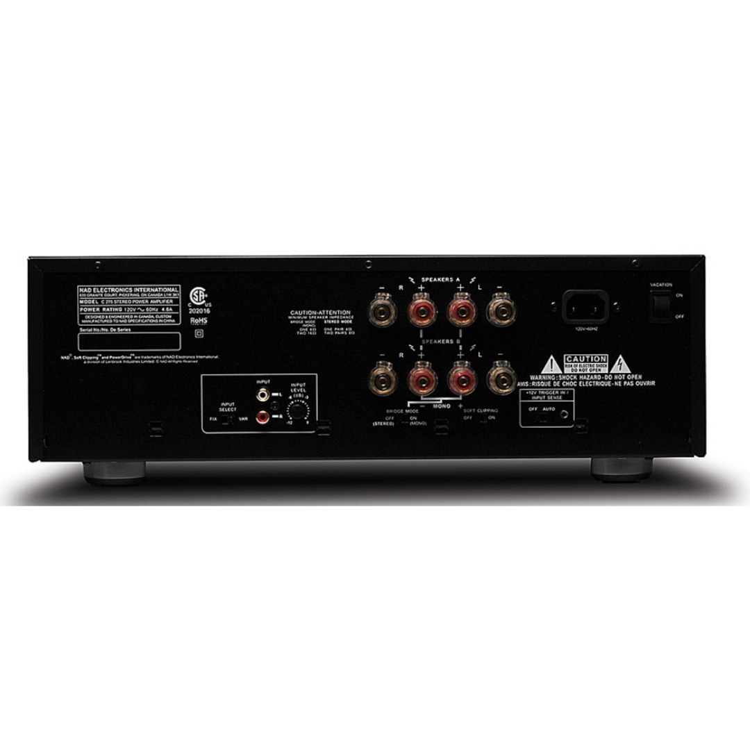 The NAD C 275BEE Stereo Power Amplifier exemplifies NAD's commitment to meticulous craftsmanship and high-performance audio. From its robust, heavy-gauge steel chassis to advanced power supplies and copper buss bars, the C 275BEE embodies the quality and precision NAD is known for. This amplifier features NAD’s ATOLogic circuit, which includes a 12V-trigger system and a signal-sensing power-on option, adding a level of flexibility that allows for seamless integration into any control system. Additionally, the C 275BEE is enhanced by NAD’s PowerDrive™ circuit topology, enabling it to deliver peak performance under various conditions. The result is a comprehensive and captivating sound that ensures you experience your music exactly as intended.
