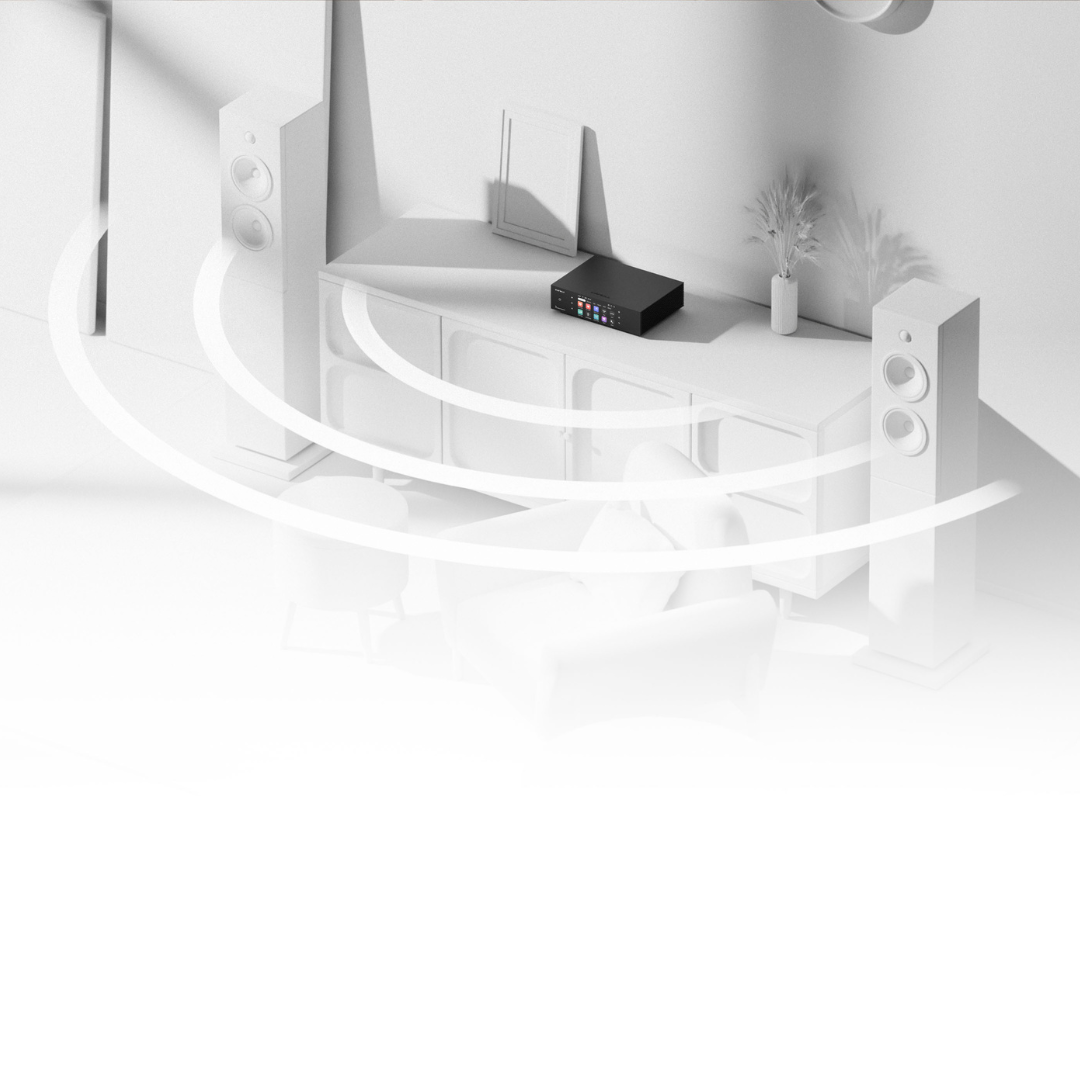 With evotune™ Room Correction, precise measurements and digital filtering automatically correct acoustic imperfections in your room. This optimizes frequency response and soundstage distribution, ensuring accurate imaging, balanced tonality, and natural bass—even in challenging listening environments. Experience true studio-quality sound adapted perfectly to your space.