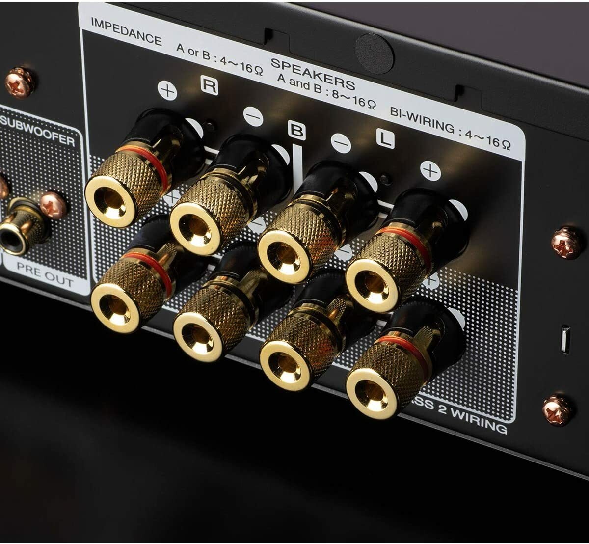 • Built to perform: In addition to high-quality speaker terminals with A/B switching capability, a fully-shielded DAC unit, and copper screws, the rigid feet provide a true-to-performance sound.